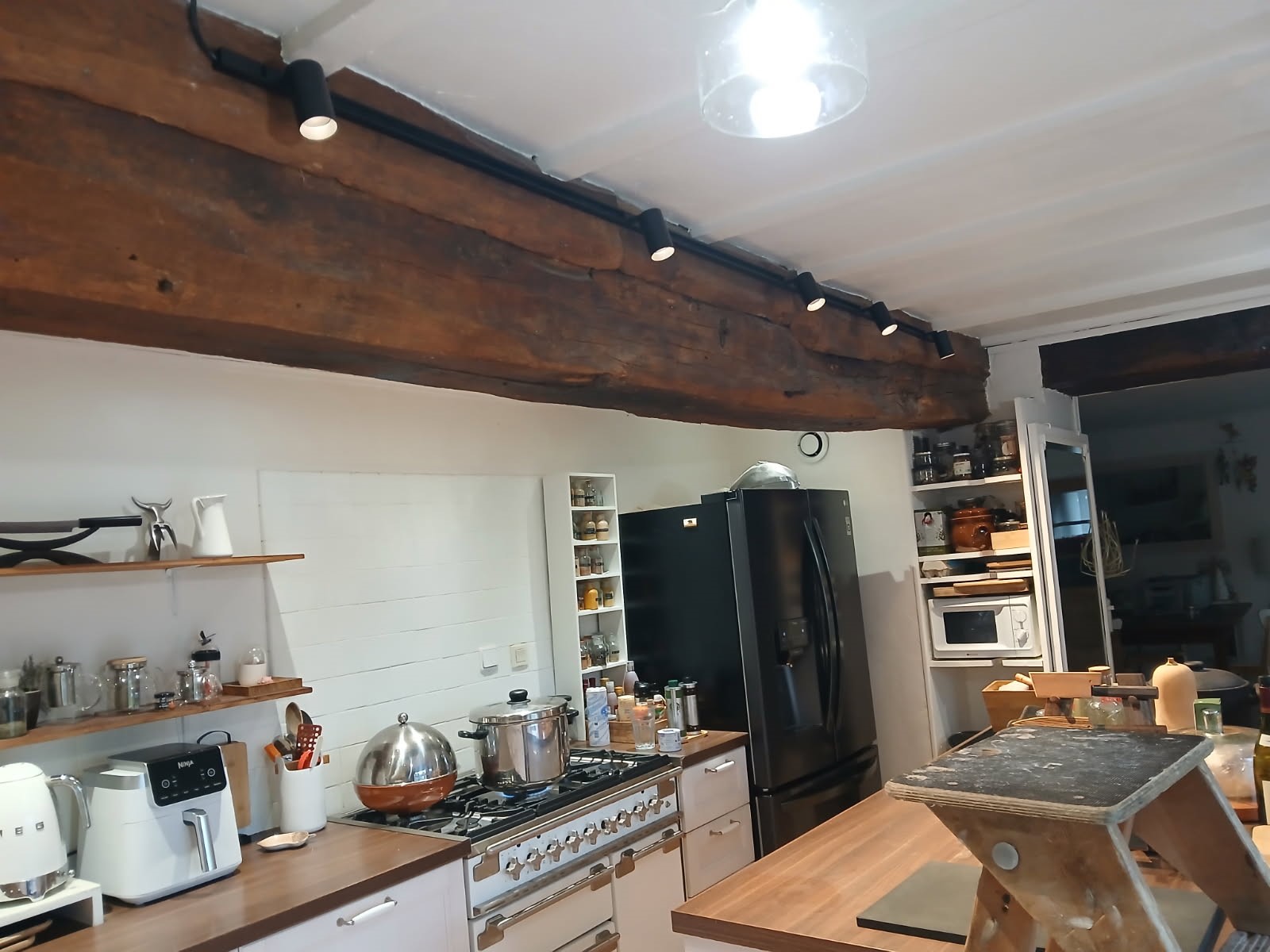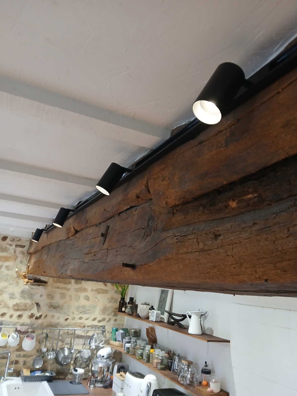 Voici un éclairage de cuisine avec des spots LOKO montés sur un rail simple allumage.